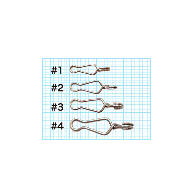 Застёжка изготовлена из прочной нержавеющей проволоки и обладает высокой разрывной нагрузкой: размер №1 выдерживает около 8кг., №2 - 11 кг, №3 - примерно 13 кг, а №4 - до 21 кг, что делает её надёжной не только в ультралайтовых, но и в более силовых условиях. Усиленная форма предотвращает случайное раскрытие при рывках или активной проводке, сохраняя уверенную фиксацию даже на крупной рыбе.