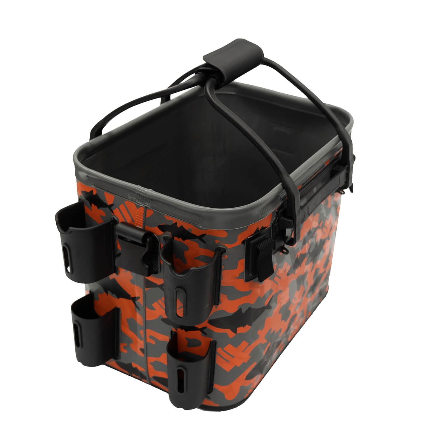4 держателя для удилищ, в которые можно поместить не только удилища, но и подсак. Помимо этого на корпусе имеются специальные ниши для захвата, для щипцов или другого инструмента, например, плоскогубцев.